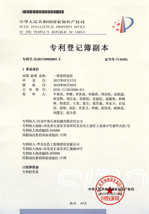 本實用新型屬于石油、煤礦和勘探用鉆具技術領域,提出了一種柔性鉆桿,包括球座,球座內設置有球頭,球頭的一端為球形體,球形體的側壁上設置有外花鍵,球座的一端設置有將球形體插入的球形凹槽,球形凹槽內的側壁上設置有內花鍵,且外花鍵和內花鍵之間設置有球頭擺動所需的空腔。本實用新型解決了現有的鉆井工具由于柔性差,容易造成鉆進過程中造斜段過長、轉彎曲率半徑大,經常會超過預期的鉆進位置的技術問題。