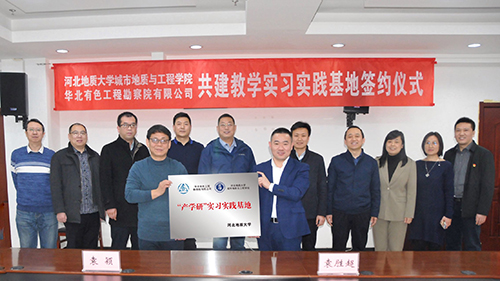 2月18日,華北有色工程勘察院有限公司(簡稱:華勘院)與河北地質大學城市地質與工程學院簽署共建教學實習實踐基地協議。隊黨委書記袁勝超,副隊長韓貴雷,副總經理暢秀俊,工會主席劉強及有關單位負責人;河北地質大學城市地質與工程學院院長袁穎,黨委副書記王輝,副院長賈磊、牛建廣及相關教研室主任出席儀式。