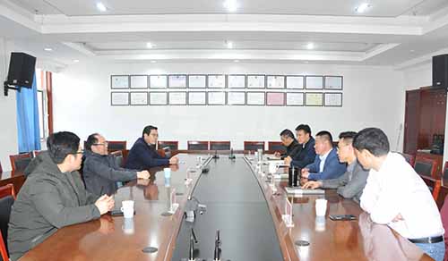 1月10日,中勘冶金勘察設計研究院有限責任公司總經理李福申一行蒞臨五一七隊,與黨委書記袁勝超,黨委副書記、隊長劉智賢,黨委委員、副隊長韓貴雷等就發揮雙方優勢加深合作進行交流座談。