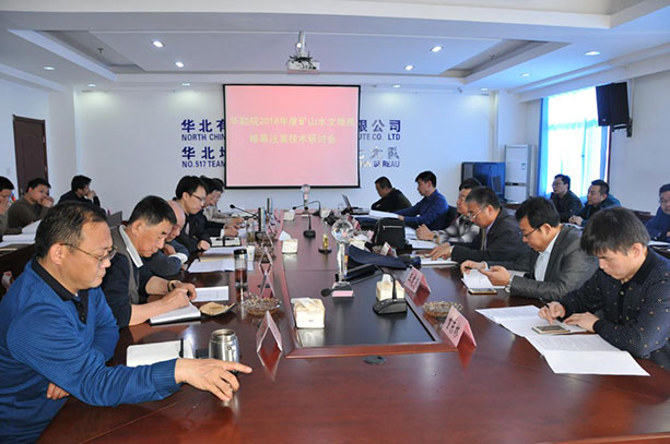 會上 ,華勘院相關技術人員匯報了山東歸來莊金礦帷幕注漿項目、山東三山島巖土工程項目、彝良馳宏鉛鋅礦、會澤鉛鋅礦水文地質項目的技術方案。與會專家、教授針對公司提出技術難題進行了研討,并提出了技術解決措施。
