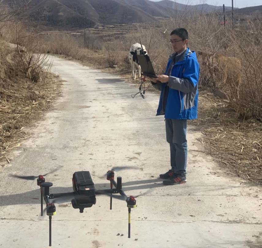 該項目工期緊,任務重,原計劃派遣6名技術人員,分三個航測作業(yè)組于半個月內完成外業(yè)數(shù)據(jù)采集,但受當?shù)匾咔榉揽赜绊?,只能協(xié)調2名技術人員一個航測組入場。項目組進場后嚴格做好疫情防控措施,迅速作業(yè),測區(qū)內地勢高差起伏大,通往山頂?shù)牡缆穾缀鯖]有,每天只能步行到山頂布設控制點,攜帶面包、礦泉水等食物進行充饑,同時還要克服惡劣天氣影響,一干就是一整天,晚上返回營地繼續(xù)整理數(shù)據(jù),作業(yè)過程十分艱苦。張家口3-4月的大風天氣,導致無人機每天可作業(yè)時間嚴重受限,項目組合理規(guī)劃作業(yè)流程,上午天氣晴朗時進行航測,下午風力變大后進行控制點布設,數(shù)據(jù)接收后第一時間傳給單位內業(yè)組,做到了內外業(yè)工作無縫銜接。